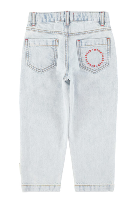 Mom fit trousers with adjustable waist, scapular and front tweezers. Detailed with red logo embroidery in the back pocket.