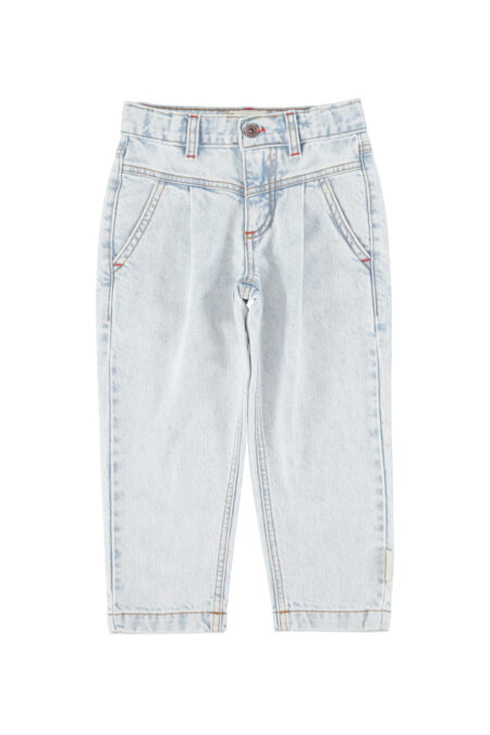 Mom fit trousers with adjustable waist, scapular and front tweezers. Detailed with red logo embroidery in the back pocket.