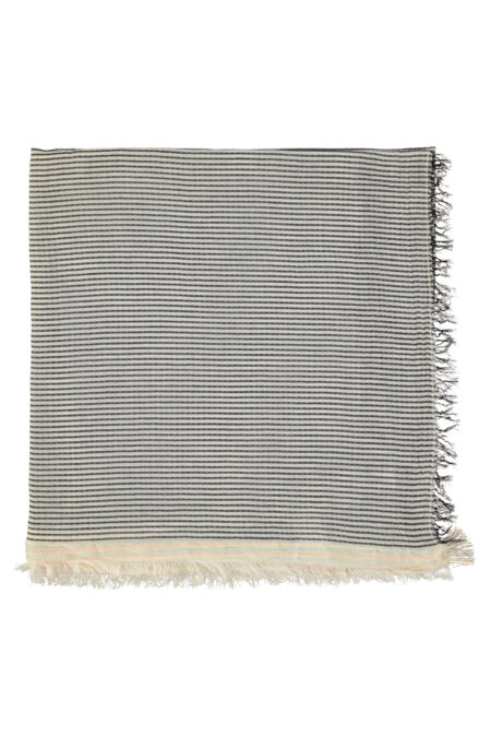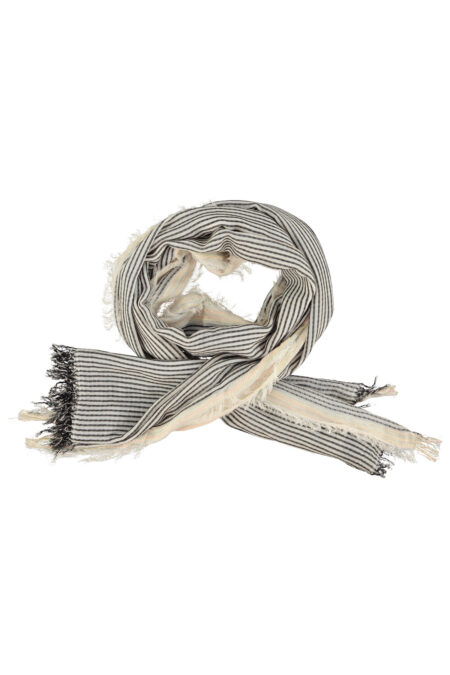 Stripped scarf with frayed trims. Lurex stripe detail. 100x180cm