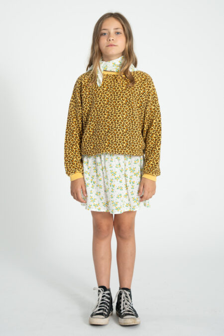 Sweatshirt in organic terry cotton with front and back prints. Ribbed hems. Red buttons on shoulder for baby sizes.