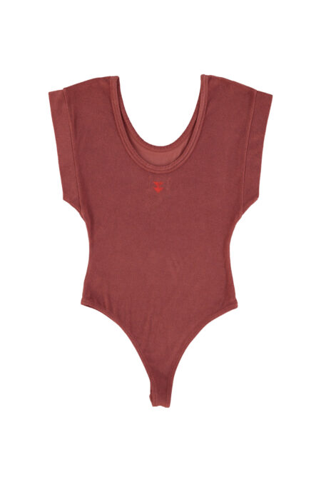 V-neck bodysuit with armhole sleeves. Front print and little logo print on the back. Snap-button fastening at the bottom.