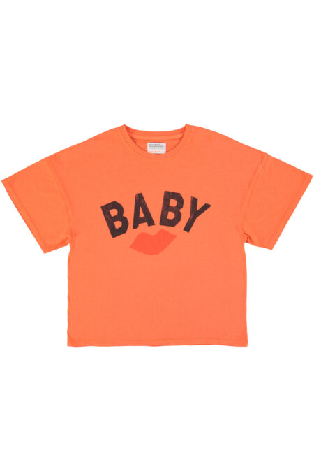 T-shirt with short sleeves and ribbed round collar. Detailed with front print. Little logo print on the neck.
