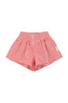 High waisted shorties with elastic at thighs and waist. Detailed with frills on the waist.