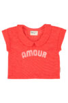 Round neck t-shirt with short drop-shoulder sleeves. Detailed with front print. Little logo print on the neck.