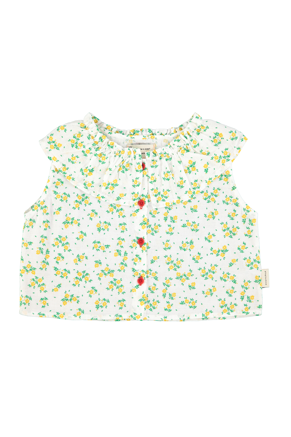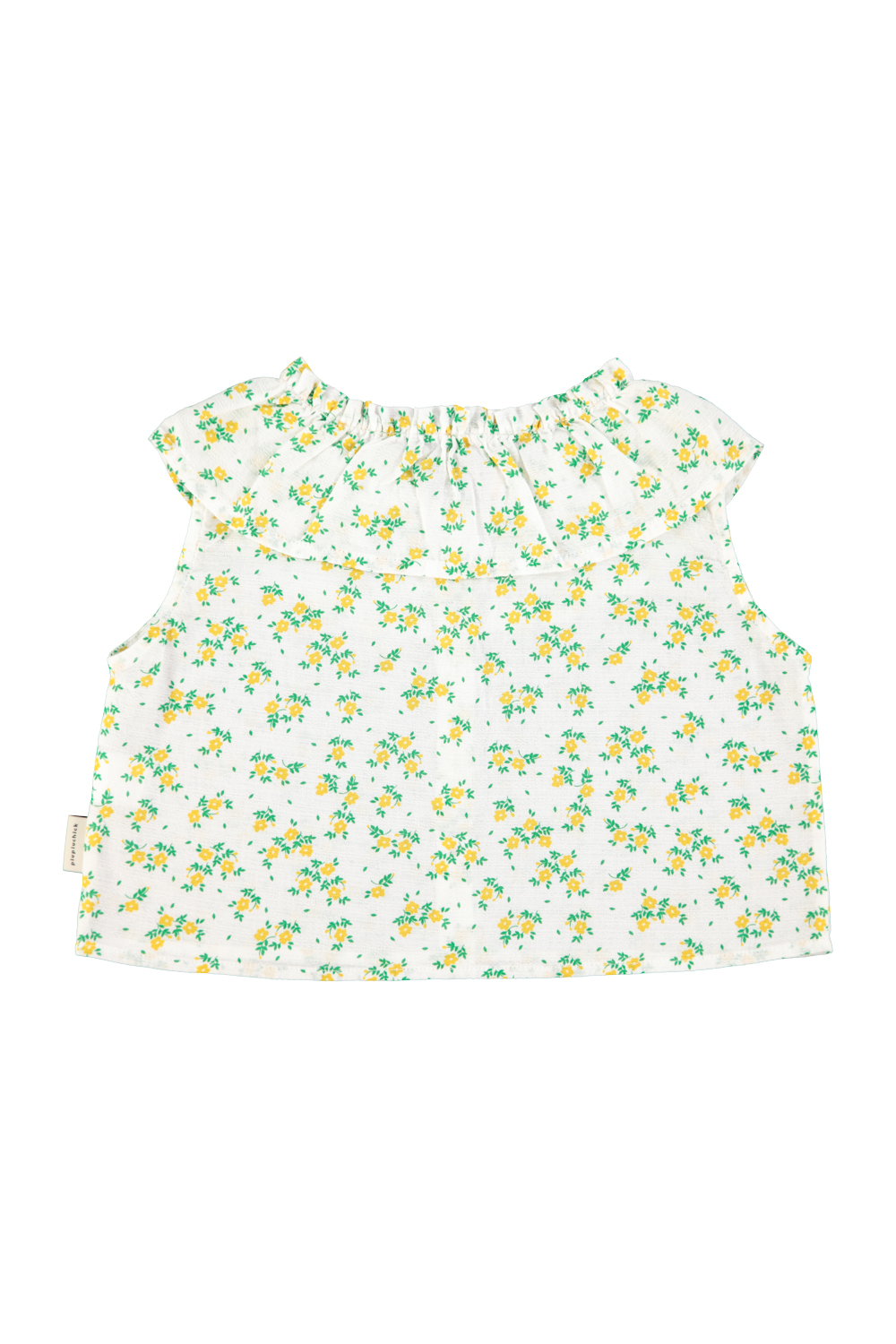 sleeveless blouse w/ collar | ecru w/ yellow flowers allover