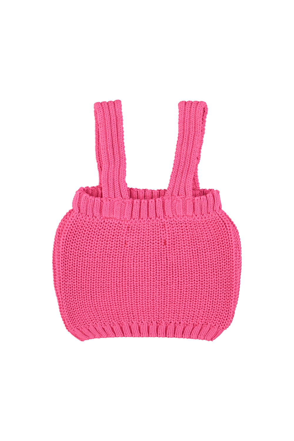 knitted top w/ straps | pink w/ cherry print