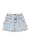 Boy shorts in soft cotton canvas with adjustable elastic on the waist. Lateral pockets. Detailed with blue logo embroidery in the back pocket.