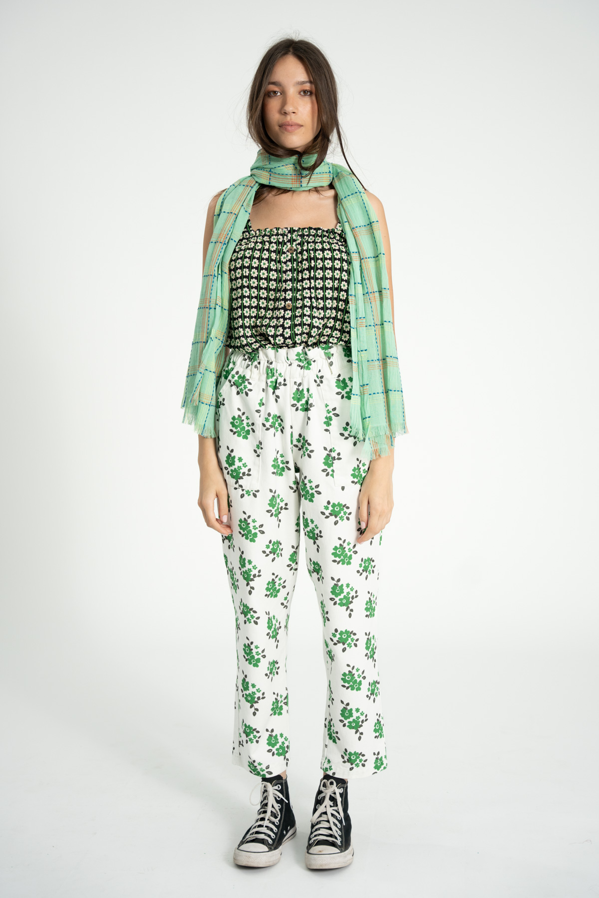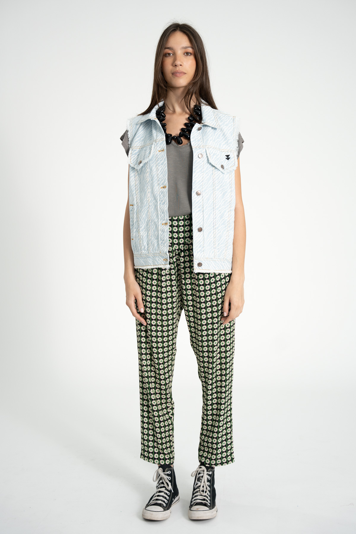 Sleeveless round neck top in cotton flamé. Detailed with front print. Little logo print on the back.