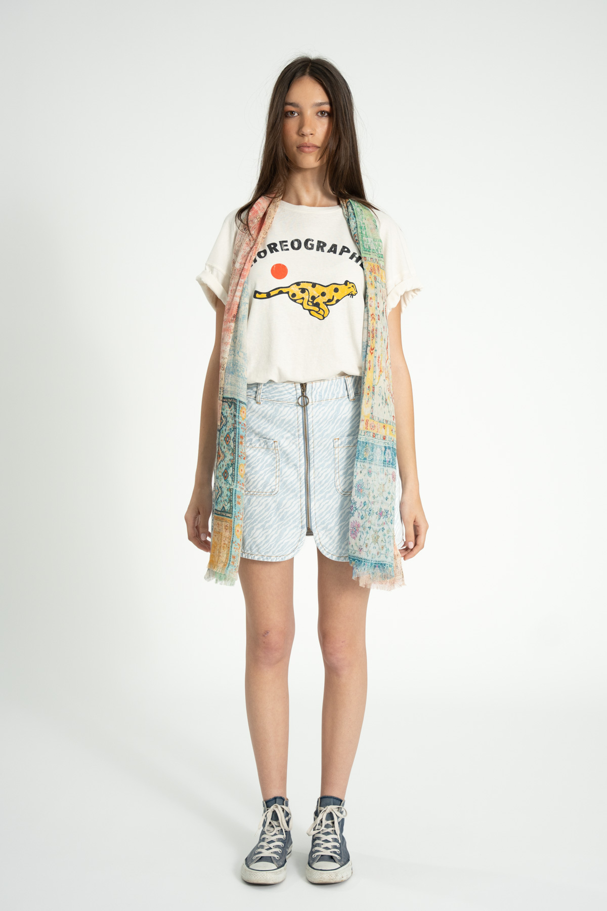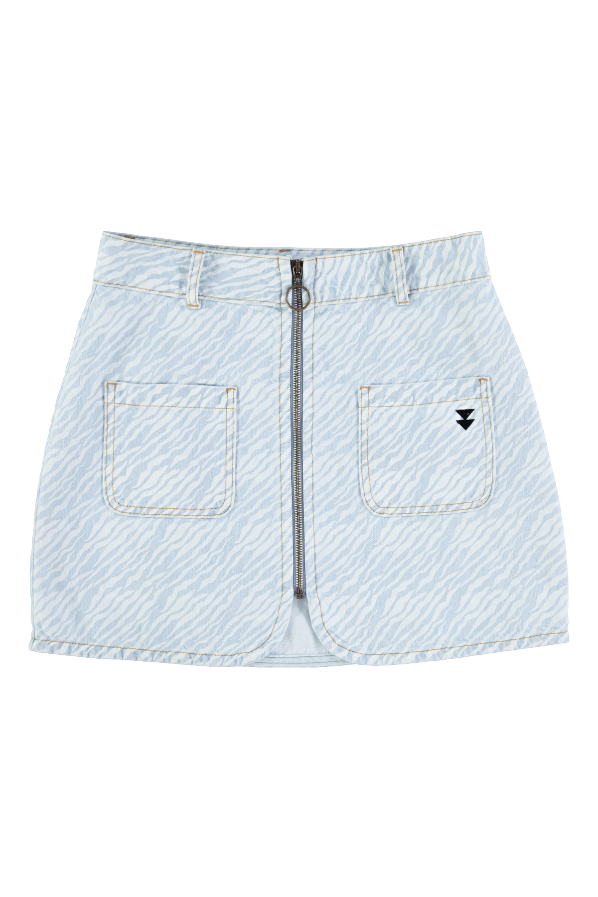 Short skirt with front zip fastening with metal zip. Front patch pockets. Belt loops.