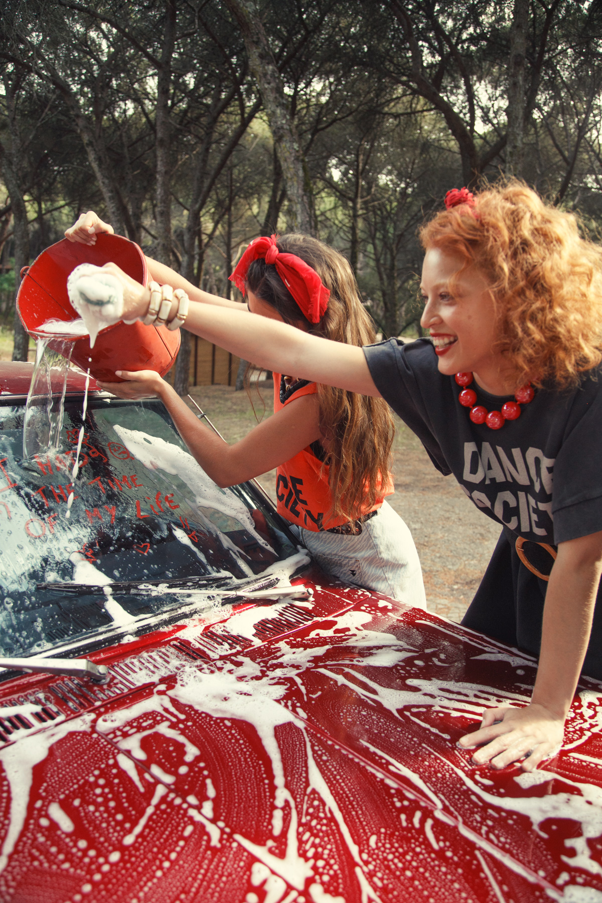 Sleeveless round neck top in cotton flamé. Detailed with front print. Little logo print on the back.