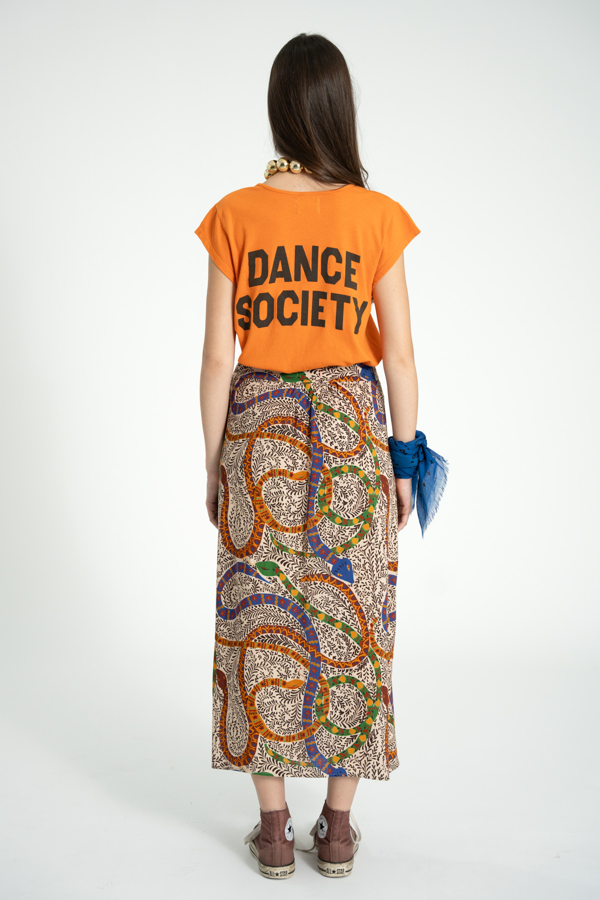 Short sleeve t’shirt in terry cotton with deep round neck. Detailed with back print. Little logo print on the chest.