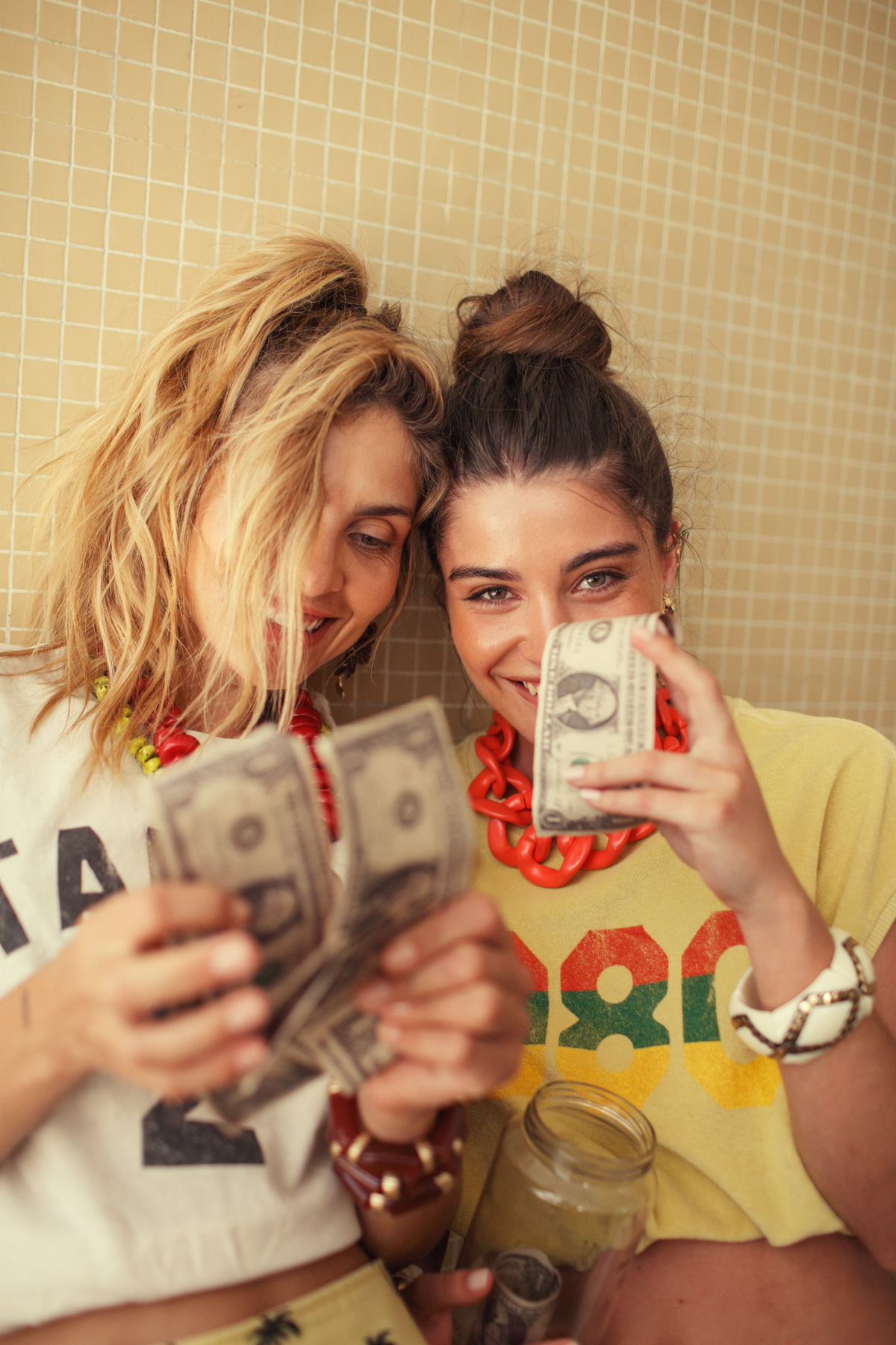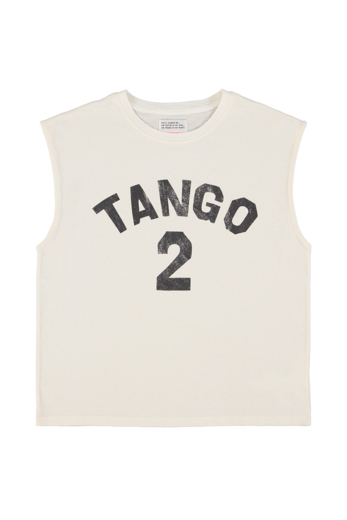 Sleeveless t-shirt w/ round neck | Ecru w/ “2 tango” print